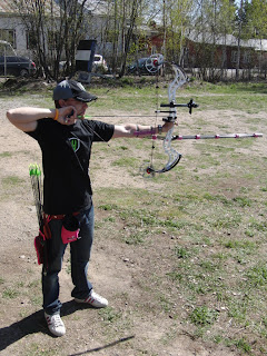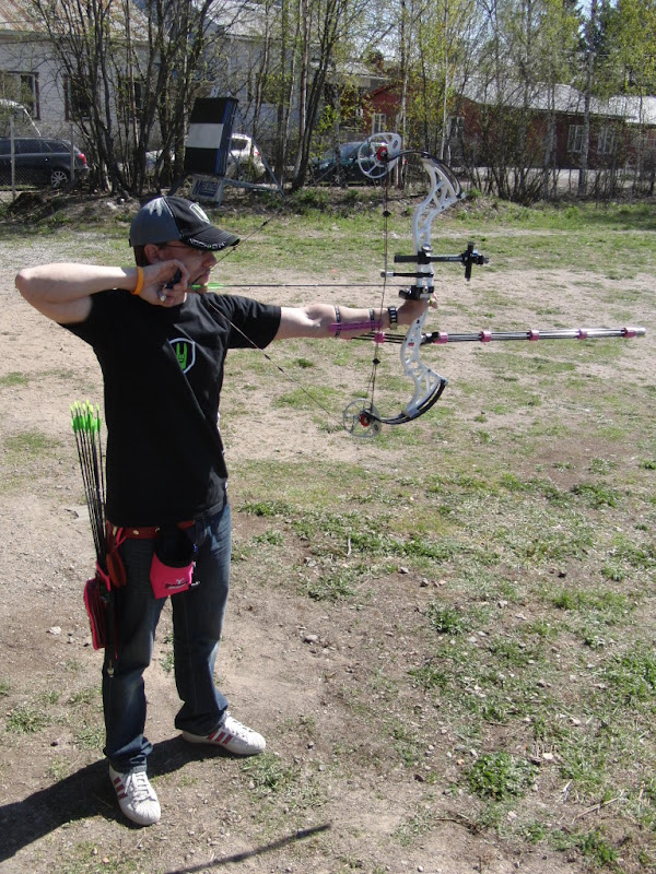 Tähtäinjousella jälleen ampumassa. Neljä sarjaa taustaan 20m ja sen jälkeen 60m Arcling Kimmon kanssa. Ammuimme IFAA 65cm tauluun, yksi nuoli viitoseen antoi pisteen. Veimme taulun taustaan ja kisa alkoi heti. Osuin ekalla nuolella viitoseen, samaan sarjaan tuli jossain vaiheessa toinen viitonen ja otin johdon kisassa. Seuraavan viitosen ampui Kimmo viidenteen sarjaan, seuraava viitonen tuli yhdeksännessä sarjassa minulle ja se oli ottelun voitto nuoli, koska enempää viitosia ei tullut. Ottelu minulle siis 2-1. Ammuimme koko ajan ympäri taulua ja pummeja tuli riittävästi. Hyydyin aivan täysin lopussa, sen verran koville ottaa tähtäinjousiammunta. Nyt on alaselkä ja jalatkin kipeät, ei taida rentoudesta olla mitään tietoa minun rekurvi ammunnassa. Sen verran hullu olen, että IFAA maasto SM:n ammun tähtäinjousella. Kolmen viikon päästä Siuntiossa kaksi päivää, yhteensä 224 nuolta. En tiedä miten siitä selviän, toivottavasti jotenkin.